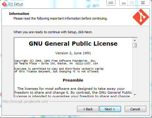 Git-1.8.4-preview20130916.exe 을 더블클릭하여 설치파일을 실행한다.