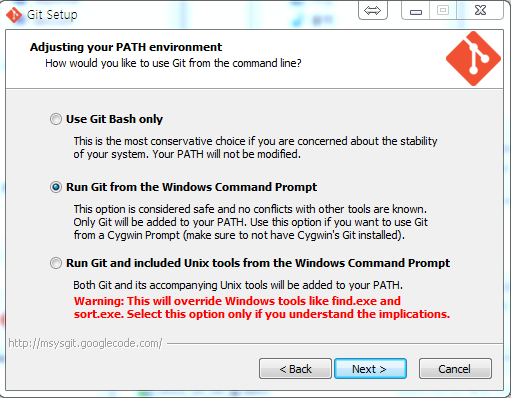 - Run Git from the Windows Command Prompt : Windows Command Prompt 사용